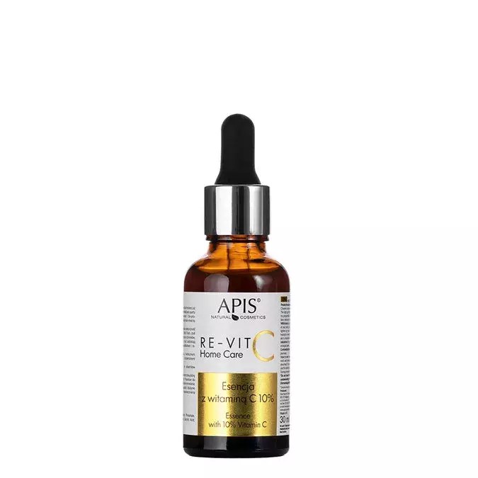 Apis - Re-Vit C Home Care - Essence with 10% Vitamin C - eine Vitamin-C-haltige Essenz, die die Haut wirksam aufhellt. Sie unterstützt die Reduzierung von Verfärbungen und ungleichmäßigem Hautton sowie Rötungen. Der Prozess der Farbvereinheitlichung wird durch Salicylsäure unterstützt, die die Regenerations- und Erneuerungsprozesse der Epidermis stimuliert und beschleunigt, ohne dass es zu Verfärbungen, übermäßiger Pigmentierung oder Entzündungen kommt, die für Rötungen verantwortlich sind. Das Produkt besitzt außerdem wertvolle antioxidative Eigenschaften und sorgt dank seines Natriumhyaluronat-Gehalts für die Hydratation der Haut. Es hat eine leicht gelartige Konsistenz. Naturkosmetik.