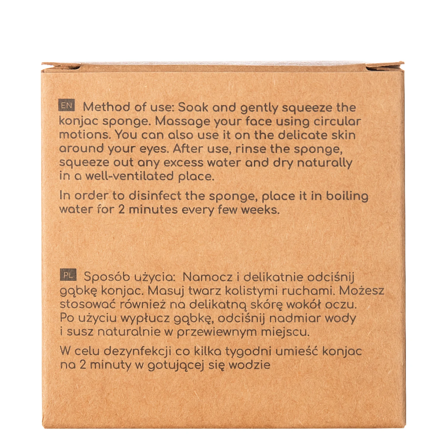 Anwendung: Befeuchten Sie den Schwamm mit warmem Wasser, drücken Sie ihn leicht aus und massieren Sie Ihr Gesicht damit. Spülen Sie den Schwamm gründlich aus, drücken Sie das überschüssige Wasser aus und lassen Sie ihn trocknen.