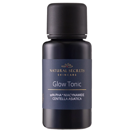 Natural Secrets - Glow Tonic - Tonisierende, aufhellende Behandlung - ein Präparat, das eine Wirkstoffkombination mit natürlichen Pflanzenextrakten enthält, die starke entzündungshemmende, aufhellende und glättende Eigenschaften aufweisen. Das Produkt enthält 10% Lactobionsäure und 3% Niacinamid (Vitamin B3), wodurch es Verfärbungen sanft aufhellt und die Arbeit der Talgdrüsen reguliert. Extrakte aus rosa Lotus, aus Indischem Wassernabel und aus Aloesaft wirken beruhigend und erhellen die Haut zusätzlich. Dank des Gehalts an Panthenol und Natriumhyaluronat wird die Haut mit Feuchtigkeit versorgt und beruhigt. Das Produkt ist in Biophotonenglas verpackt, das vor Sonnenlicht schützt. Es kann von schwangeren und stillenden Frauen verwendet werden.