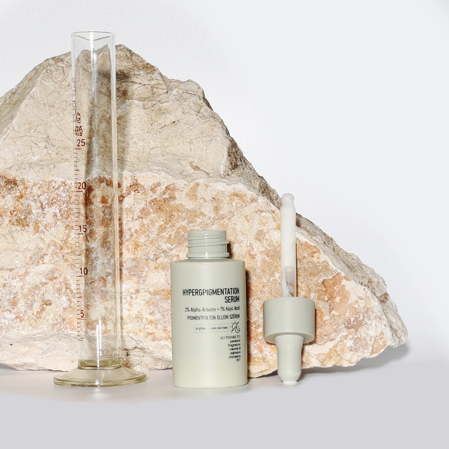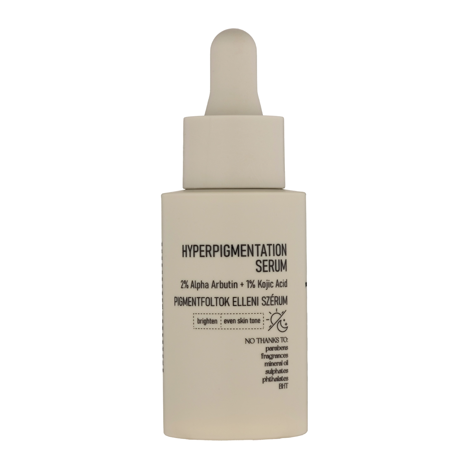 - 2% Alpha-Arbutin – hemmt das Enzym, das an der Pigmentbildung in der Haut beteiligt ist, unterstützt die Reduzierung der Sichtbarkeit von Verfärbungen und Unregelmäßigkeiten im Hautton,