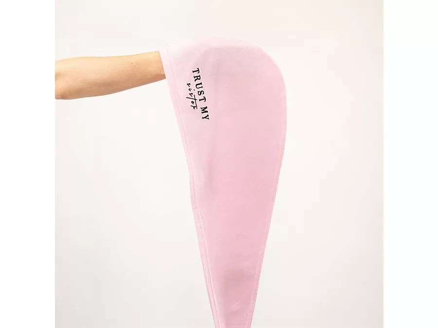 Trust My Sister - Baumwoll-Haarhandtuch - ein zartes Baumwoll-Haar-Handtuch. Dank der zarten Struktur der Baumwolle schädigt sie das Haar nicht und elektrisiert es nicht, verursacht keine Verwicklungen der Haare und Spliss. Das Handtuch hat die Form einer Kapuze, die es leicht macht, es über den Kopf zu ziehen. Es kann verwendet werden, um das Haar zu entwässern, beim Auftragen von Masken oder zum Plopping, einer Methode, mit der Sie die natürliche Locke von lockigem Haar betonen können.