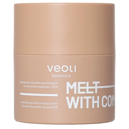 Veoli Botanica - Melt With Comfort – eine Reinigungsbutter, die speziell für trockene, dehydrierte und regenerationsbedürftige Haut entwickelt wurde. Sie umhüllt die Haut mit einem zarten, süß-milchigen Duft und sorgt für einen Moment wahrer Entspannung. Die Formel des Produkts entfernt sanft und effektiv wasserfestes Make-up, Verschmutzungen, überschüssigen Talg sowie Kosmetika mit LSF. Unter dem Einfluss der Handwärme verwandelt sich die Butter in ein Öl, das beim Kontakt mit Wasser zu einer leichten, samtigen Emulsion wird und ein angenehmes Reinigungserlebnis garantiert. In der Zusammensetzung des Produkts befinden sich Sheabutter sowie zwei sorgfältig ausgewählte Öle: Süßmandelöl und Sonnenblumenkernöl. Diese Inhaltsstoffe bilden einen zarten Schutzfilm, der übermäßigen Wasserverlust aus der Epidermis verhindert und die Haut weich, glatt und angenehm im Griff hinterlässt. Der Zusatz von wertvollem Ceramid NP und Squalan lindert Reizungen, unterstützt die Regeneration der Haut und stärkt und erneuert die Hydrolipidbarriere. Das Ergebnis ist ein Gefühl tiefster Beruhigung und Komfort. Die Butter eignet sich hervorragend als erster Schritt in der zweistufigen Reinigungsroutine. Das Produkt ist vegan.